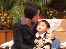 被美國(guó)軍用偵察機(jī)撞毀而犧牲的中國(guó)飛行員王偉的妻子阮國(guó)琴,二十日含淚懷抱兒子在北京人民大會(huì)堂參加中國(guó)黨政軍領(lǐng)導(dǎo)人的會(huì)見(jiàn)。