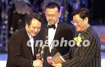 中國大陸影帝姜文29日在香港舉行的“第二十屆香港電影金像獎(jiǎng)?lì)C獎(jiǎng)典禮”上,與香港名導(dǎo)演吳思遠(yuǎn)將最佳導(dǎo)演獎(jiǎng),頒發(fā)給李安。中新社傳真 洪少葵 攝