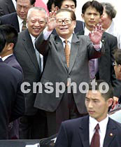 圖:江澤民抵達香港 2001年5月8日 13:35 ![]() 中國國家主席江澤民5月8日中午乘專機抵達香港機場,參加“2001年《財富》全球論壇”,登車前向采訪的記者招手致意。中新社傳真任晨鳴攝