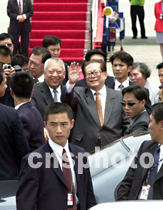 圖:董建華等機(jī)場迎接江澤民 2001年5月8日 14:29 ![]() 香港特區(qū)行政長官董建華等五月八日到機(jī)場迎接國家主席江澤民。中新社傳真 任海霞攝
