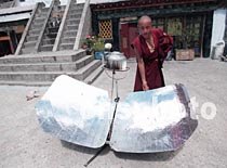 圖:西藏僧人使用太陽(yáng)灶煮開水 2001年5月9日 19:38 ![]() 西藏拉薩市近郊著名寺廟哲蚌寺僧人在寺院中熟練使用太陽(yáng)灶煮開水,為保護(hù)青藏高原的生態(tài)環(huán)境,太陽(yáng)能灶已廣泛在西藏使用。中新社記者 鄒憲 攝 |