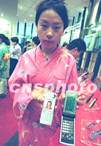 和服小姐展示可視電話手機(jī) 2001年5月11日 16:17