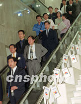出席國(guó)際周閉幕式的各方人士步出會(huì)場(chǎng) 2001年5月15日 21:09
