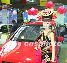 正在昆明舉行的五月“世博2001”汽車品牌展示會(huì)上,唯一身著少數(shù)民族服飾的模特令人耳目一新。中新社記者 納家驊 攝