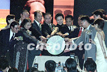 香港各界支持北京申奧暨世界三大男高音紫禁城廣場音樂會酒會,五月二十一日在香港舉行。中央政府駐港聯(lián)絡(luò)辦副主任王鳳超、外交部駐港特派員吉佩定等出席。中新社傳真 任海霞 攝