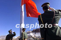多彩西藏:布達拉宮前看升旗(圖文) 2001年5月24日 06:48 ![]() 中國西藏拉薩布達拉宮廣場二十三日舉行隆重的升旗儀式,慶祝西藏和平解放五十周年。中新社記者 滿會喬 攝 ![]() 全國人大常委會副委員長、西藏自治區(qū)政協(xié)主席帕巴拉·格列朗杰(中),自治區(qū)黨委常務副書記、自治區(qū)人大主任熱地(右)等出席了在拉薩布達拉宮廣場舉行的“升國旗·唱國歌”儀式。中新社記者 滿會喬 攝