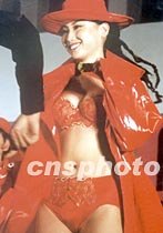 日前,在北京舉辦的內(nèi)衣品牌“歐迪芬”2001夏季新款展示會上,中國名模張君小姐身穿紅色外套、紅色內(nèi)衣邊展邊舞。中新社記者 錢興強(qiáng) 攝