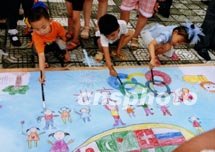 六月一日,湛江海濱公園洋溢著兒童節(jié)日的歡樂氣氛,兒童們在歡欣雀躍的游園活動中接受了奧運(yùn)精神的教育。圖為兒童即席揮毫作畫支持北京申奧。中新社記者 陳祥勝 攝