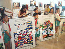 由國家環(huán)?偩中讨行慕M織評選的全國中小學生環(huán)保公益廣告優(yōu)秀作品,4日贈送給北京奧申委,表示中國中小學生對北京申辦奧運的支持。中新社圖 潘旭臨 攝