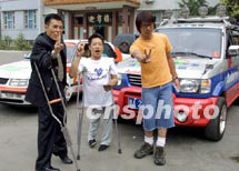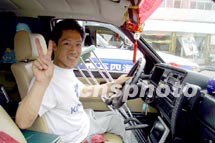 圖文:“萬里行”車隊(duì)喜逢不尋常的志同道合者 2001年6月5日 11:36 ![]() “萬里行”車隊(duì)文藝大使、歌手紅豆與殘疾人申奧車隊(duì)共勉為北京申奧助威。中新社圖 魏孝明 攝 ![]() 身為九家公司總裁的殘疾人孫杰駕車萬里迎奧運(yùn)。中新社圖 魏孝明 攝