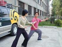 許戈輝與武術(shù)世界冠軍打太極。 中新社記者 呂振亞 攝