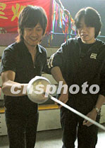 明星老狼、高明俊隨鳳凰衛(wèi)視“申奧萬里行”來到遼寧體育運(yùn)動學(xué)校體操館,參加在這里舉辦的各種活動。中新社圖 魏孝明 攝