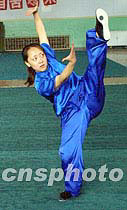 ![]() 第三屆世界武術(shù)錦標(biāo)賽劍術(shù)冠軍周淑紅為“萬里行”車隊表演一套八卦拳,以表達(dá)自己對北京舉辦奧運(yùn)會的的熱切期盼。魏孝明 攝