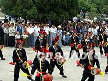 圖:“萬里行”抵達武威市 2001年6月11日 09:16 ![]() 6月10日下午,“萬里行”鳳凰車隊抵達河西走廊東端的武威市。當?shù)乩相l(xiāng)在市區(qū)文化廣場以“攻鼓子”方隊歡迎,表達西域人民對北京申奧的支持。中新社圖 魏孝明 攝