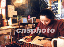 西藏拉薩街頭近來(lái)興起多處藏式酒吧,為拉薩市民增添了休閑去處。藏族女孩德吉在一家環(huán)境幽雅的酒吧內(nèi)愜意地讀書。中新社記者 滿會(huì)喬 攝