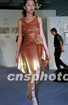 模特出身的新晉歌手王秀琳12日在香港為「好男好女-第六屆杰出青年設(shè)計(jì)(形象創(chuàng)作)大獎(jiǎng)」展示本地時(shí)裝設(shè)計(jì)新秀的作品《陽光》,結(jié)果與另一參賽作品《變種》并列大獎(jiǎng)。中新社圖 鄧慶樂 攝
