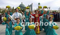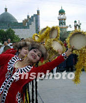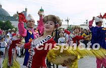 圖:“哈密瓜”喜迎“萬(wàn)里行”車(chē)隊(duì) 2001年06月15日 08:11 ![]() ![]() ![]() ![]() ![]() 6月14日,“北京——莫斯科申奧萬(wàn)里行”鳳凰車(chē)隊(duì)進(jìn)疆抵達(dá)哈密市,當(dāng)?shù)孛癖娫诠芡趿昵懊媾e行盛大儀式,歡迎遠(yuǎn)道而來(lái)的客人。由哈密歌舞團(tuán)表演的“哈密瓜”等民族歌舞奔放熱烈,表達(dá)了維吾爾族人民對(duì)北京申奧活動(dòng)的深情厚誼。中新社圖 魏孝明 攝 |