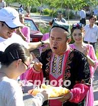 ![]() 火焰山曾一度阻擋了唐僧師徒西行取經(jīng)的路途,它因中國(guó)四大名著之一的《西游記》而家喻戶曉。6月15日,“申奧萬(wàn)里行”鳳凰車隊(duì)順利穿過(guò)火焰山口。圖為被太陽(yáng)曬得發(fā)紅的火焰山坡。中新社圖 魏孝明 攝 ![]() 6月15日傍晚七時(shí)許,“申奧萬(wàn)里行”將士抵達(dá)吐魯番市。圖為當(dāng)?shù)鼐S吾爾族民眾在城門(mén)外用哈密瓜慰勞遠(yuǎn)道而來(lái)的將士們。中新社圖 魏孝明 攝