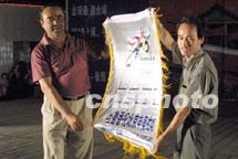 圖:吐魯番市市長向申奧車隊(duì)領(lǐng)隊(duì)贈(zèng)送錦旗 2001年06月16日 17:30 ![]() 6月15日傍晚,“北京--莫斯科申奧萬里行”鳳凰車隊(duì)在穿過火焰山后安抵新疆吐魯番市。吐魯番市市長向車隊(duì)領(lǐng)隊(duì)贈(zèng)送錦旗,當(dāng)?shù)貙W(xué)生和民眾在申奧長幅上簽名,表達(dá)邊疆兒女對(duì)北京申奧的大力支持。中新社圖 魏孝明 呂振亞 攝
