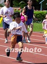 香港奧委會(huì)6月17日舉辦聲援北京申辦2008年奧運(yùn)會(huì)長(zhǎng)跑活動(dòng),數(shù)千名香港市民在高溫烈日下闔家出動(dòng)為北京加油。中新社記者 任晨鳴 攝