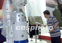 圖:“神舟”飛船模型亮相建黨圖片展 2001年06月18日 17:08 ![]() 一九九九年飛行試驗(yàn)取得圓滿(mǎn)成功的“神舟”飛船模型即將在20日開(kāi)幕的中共建黨80周年圖片展亮相。中國(guó)第一艘無(wú)人太空船“神舟號(hào)”試飛成功是中國(guó)航天史上一項(xiàng)重要的里程碑,同時(shí)也標(biāo)志著中國(guó)將進(jìn)入載人航天時(shí)代。中新社記者 滿(mǎn)會(huì)喬 攝