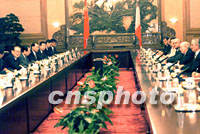 江澤民對(duì)發(fā)展中國(guó)與馬耳他關(guān)系提出三點(diǎn)希望 2001年07月02日 21:32 ![]() 國(guó)家主席江澤民二日在北京與馬耳他總統(tǒng)德馬爾科(右二)會(huì)談。中新社記者 滿會(huì)喬 攝