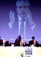 ![]() 7月12日,五個(gè)奧運(yùn)會(huì)申辦城市在莫斯科斯拉夫酒店召開新聞發(fā)布會(huì)。圖為加拿大多倫多代表團(tuán)成員在發(fā)布會(huì)上。中新社記者 王瑤 攝 ![]() 五個(gè)奧運(yùn)會(huì)申辦城市7月12日在莫斯科斯拉夫酒店召開新聞發(fā)布會(huì)。圖為法國(guó)巴黎市長(zhǎng)貝勒諾介紹情況。中新社記者 王瑤 攝
