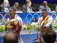 多倫多申奧花絮:土著歌舞開場助申奧(附圖) 2001年07月13日 16:30 ![]() ![]() ![]() ![]() 中新網(wǎng)莫斯科7月13日消息:多倫多申奧代表團陳述開場別開生面:三名印第安藝人身著民族服裝,手執(zhí)土風樂器,載歌載舞進入會場,贏得了在場國際奧委會委員的掌聲。 首先代表多倫多發(fā)言的是一位盛裝的土著代表,他對在場的奧委會委員們說,歡迎各國朋友能到“偉大的城市多倫多”。他希望2008年奧運會能在多倫多舉辦。 |