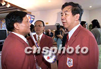 組圖:北京代表團為申奧陳述做好充分準備 2001年07月13日 19:34 ![]() 7月13日,國際奧委會112次會議在莫斯科世界貿(mào)易中心舉行,會議將表決2008年奧運會舉辦城市。圖為劉淇(左)與袁偉民在場外交談。中新社記者 王瑤 攝 ![]() 7月13日,國際奧委會112次會議在莫斯科世界貿(mào)易中心舉行會議,表決2008年奧運會舉辦城市。圖為中國著名運動員劉璇(中)、黃志紅會前接受采訪。中新社記者 王瑤 攝