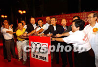 組圖:香港各界為北京申奧加油吶喊 2001年07月13日 21:35 ![]() 為支持北京成功申辦2008年奧運會,香港多個社團在文化中心舉辦晚會,中聯(lián)辦副主任鄭坤生、香港民政事務(wù)局長林煥光等主持儀式支持北京申辦奧運。中新社傳真 洪少葵 攝 ![]() 為支持北京成功申辦2008年奧運會,香港各界群眾紛紛舉辦各項活動支持申奧,13日晚文化中心露天廣場市民揮旗、舞獅為北京加油吶喊。中新社傳真 洪少葵 攝