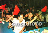 圖:全民關注北京申奧投票情況 2001年07月13日 22:54 ![]() 福州市眾多百姓十三晚走出家門來到酒吧、咖啡屋等公眾場所,通過觀看電視、收聽收音機等方式關注北京申奧進展。中新社圖 劉可耕 攝