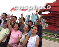 組圖:申奧之夜激情飛揚(yáng) 2001年07月13日 23:45 ![]() 十三日晚,福建省各界青年來(lái)到福州五一廣場(chǎng)高舉北京2008年申奧旗幟,滿(mǎn)懷激情歡呼北京申奧成功。中新社圖 劉可耕 攝 ![]() 手舉中國(guó)國(guó)旗和申奧標(biāo)志的游客十三日下午在青島五四廣場(chǎng)上齊聲高呼:相約北京,揚(yáng)帆青島。作為協(xié)辦城市,青島正積極地為申奧工作做最后的準(zhǔn)備。中新社記者 鄭萍萍 攝