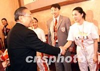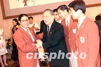 ![]() 國務(wù)院副總理李嵐清在中國駐俄使館接見北京申奧代表團(tuán)。中新社記者 王瑤 攝