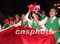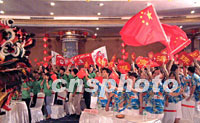 ![]() 13日夜,廣東珠海市各界人士在珠海度假村千禧宮慶祝北京申奧成功。中新社圖 石頭 攝 |