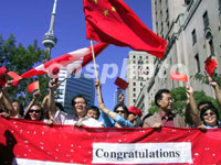 圖:多倫多華人歡慶北京申奧成功 2001年07月14日 07:19 ![]() 七月十三日,北京申奧成功,多倫多華人華僑在聯(lián)合火車站前街舉辦慶祝活動(dòng)。中新社記者 徐德金 攝