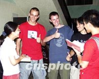 組圖:學生歡慶申奧成功 2001年07月14日 07:21 ![]() 十三日晚,北京申奧成功,北京清華大學來自澳大利亞的兩位留學生接受記者采訪時表示,為北京感到驕傲。中新社記者 張勤 攝 ![]() 北京大學幾千名師生十三日晚聚集在校園里,慶祝北京申奧成功。中新社圖 李剛 攝