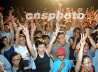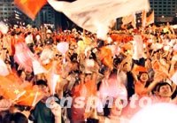 ![]() 北京各大高校的學生十三日晚在北京中華世紀壇和市民一同歡慶北京申奧成功。中新社記者 滿會喬 攝
