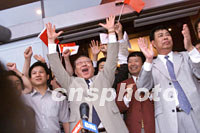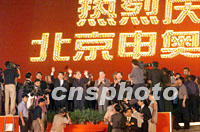 組圖:國(guó)家領(lǐng)導(dǎo)人兩地同慶申奧成功 2001年07月14日 07:35 ![]() 國(guó)家領(lǐng)導(dǎo)人江澤民、李鵬、朱镕基、李瑞環(huán)、胡錦濤等十三日晚在北京中華世紀(jì)壇和市民一同歡慶北京申奧成功。中新社記者 滿會(huì)喬 攝 ![]() 率領(lǐng)中國(guó)政府代表團(tuán)的李嵐清副總理,在中國(guó)駐莫斯科大使館歡呼北京申辦二00八年奧運(yùn)會(huì)成功。中新社記者 王瑤 攝