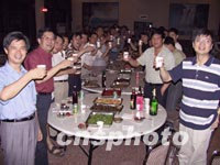 圖:新聞社采編人員慶北京申辦奧運成功 2001年07月14日 11:08 ![]() 中國新聞社采編人員十四日一點在北京總社舉行夜餐慶北京成功申辦2008年奧運會。圖為副社長郭招金(左)、副社長劉北憲(右)與眾人舉杯相慶。中新社記者 鄒憲 攝