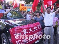 組圖:多倫多“中國(guó)城”歡慶北京申奧成功 2001年07月14日 19:45 ![]() 當(dāng)?shù)貢r(shí)間七月十三日,多倫多“中國(guó)城”的華人華僑為北京申奧成功舉行了大型慶;顒(dòng)。中新社記者 徐德金 攝 ![]() 七月十三日,多倫多“加拿大北京協(xié)會(huì)”舉行車隊(duì)游行,慶祝北京申辦奧運(yùn)成功。他們歡呼“祝福北京”,“新北京,新奧運(yùn)”。中新社記者 徐德金 攝