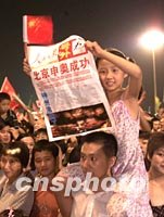 圖文:北京各大傳媒大量報(bào)道申奧成功 2001年07月14日 22:16 ![]() 《人民日?qǐng)?bào)》報(bào)道北京申奧成功的喜訊。中新社記者 毛建軍 攝 ![]() 《北京青年報(bào)》報(bào)道北京申奧成功的喜訊。中新社圖 劉殊瑾 攝 中新社北京七月十四日電(記者葉小剛)北京申奧成功喜訊傳來(lái),京城各大傳媒均以大量版面、播出時(shí)段報(bào)道了這一令中國(guó)億萬(wàn)人民歡呼喜悅的消息。 《人民日?qǐng)?bào)》今天用四個(gè)整版的篇幅予以報(bào)道,頭版頭條位置以《首都各界歡慶北京申辦二00八年奧運(yùn)會(huì)成功》為題報(bào)道北京慶祝的盛況,右下角刊發(fā)社論《譜寫奧運(yùn)史上最壯麗的篇章》。第二版以大半版篇幅發(fā)表了特寫《為了跨世紀(jì)的夢(mèng)》。 《北京日?qǐng)?bào)》更以十二個(gè)版的篇幅重拳出擊,一版標(biāo)題位置套紅大字:“二00八奧運(yùn):北京”。下方一張北京民眾在天安門廣場(chǎng)歡慶的大幅照片幾乎占據(jù)了整個(gè)版面。第二版到第十二版分別以“決戰(zhàn)莫斯科”、“歷史的跨越”、“京城不眠夜”、“沸騰長(zhǎng)安夜”、“萬(wàn)民同歡樂(lè)”、“歡歌遍神州”等為題從不同角度進(jìn)行了報(bào)道。 中國(guó)中央電視臺(tái)從昨晚申奧成功后以不停機(jī)、不間斷的方式報(bào)道北京和全國(guó)各地歡慶的盛況。今晚新聞聯(lián)播節(jié)目從預(yù)定的三十分鐘延長(zhǎng)至五十二分鐘,其中五十分鐘是歡慶申奧成功內(nèi)容。 北京其他主要傳媒《北京青年報(bào)》、《光明日?qǐng)?bào)》、《中國(guó)青年報(bào)》等也都以大量篇幅報(bào)道了這一特大喜訊。(完) |