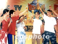 組圖:2001CCTV-MTV歌手匯聚京城歡慶申奧成功 2001年07月15日 18:54 ![]() 在北京申奧成功之際,2001CCTV-MTV音樂盛典,十五日在北京舉辦歡慶申奧成功,評選歌手現(xiàn)場投票活動。圖為年輕歌手身穿前衛(wèi)時裝載歌載舞盡興表演。中新社記者 錢興強 攝 ![]() 為歡慶北京2008年申奧成功,CCTV-MTV音樂盛典十五日在北京舉行盛大歡慶活動。圖為眾歌手和歌迷舉杯共慶北京申奧成功。中新社記者 錢興強 攝