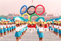![]() 北京市幼兒教師十六日在北京天安門廣場表演藝術(shù)體操,慶祝北京申奧成功。中新社記者 宋吉河 攝 ![]() 來自云南省的小學(xué)生十六日在北京天安門廣場跳竹竿舞,歡慶北京申奧成功。中新社記者 宋吉河 攝
