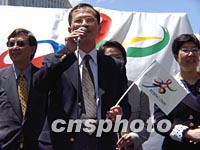 圖:香港民建聯(lián)主席曾鈺成祝賀北京申奧成功 2001年07月16日 20:02 ![]() 七月十五日中午,正在紐約訪問的香港民主建港聯(lián)盟主席曾鈺成參加“美東地區(qū)慶祝北京申奧成功大會”。曾鈺成說,香港同胞愿支持北京,把二○○八年奧運會辦成最成功的體育盛會。中新社記者 陳建 攝