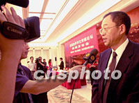 圖文:“首屆世界華文傳媒論壇”九月南京開(kāi)幕 2001年08月02日 19:49 ![]() 中國(guó)新聞社二日在北京人民大會(huì)堂舉行首屆世界華文傳媒論壇新聞發(fā)布會(huì),社長(zhǎng)劉澤彭接受新聞界采訪,準(zhǔn)備迎接全球華文新聞界的盛會(huì)。中新社記者 賈國(guó)榮 攝 ![]() 中國(guó)新聞社與南京市政府二日在北京人民大會(huì)堂舉行新聞發(fā)布會(huì),海外華文媒體的“峰會(huì)”——首屆世界華文傳媒論壇今秋九月將在南京召開(kāi),由江蘇波司登股份有限公司獨(dú)家協(xié)辦。中新社記者 賈國(guó)榮 攝