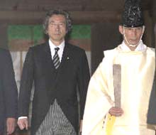 圖文:小泉純一郎參拜靖國神社招致抗議 2001年08月13日 18:06 ![]() 小泉不顧反對參拜靖國神社 ![]() 在二戰(zhàn)中韓國死難者家屬抗議小泉參拜 中新網(wǎng)北京8月13日消息:日本首相小泉純一郎今天下午不顧中國和韓國等亞洲鄰國的強(qiáng)烈反對參拜了供奉著十四名甲級戰(zhàn)犯的靖國神社。 參拜完畢后,當(dāng)被問及在任職期間他是以個人還是首相身份參拜靖國神社時,他回答說:“我不想特別說明這次是私人還是官方的參拜! 小泉在日本時間下午四點(diǎn)半(北京時間三點(diǎn)半)參拜了靖國神社后回答了記者提問。 一批韓國人今天在首相官邸舉行靜坐,以抗議小泉純一郎參拜靖國神社。這個九人組成的抗議團(tuán)體代表在二戰(zhàn)中日軍中喪生的軍人和平民的家屬。他們自從上周六開始就號召舉行靜坐、絕食和其它抗議活動。 太平洋戰(zhàn)爭喪親聯(lián)合會舉行了抗議活動反對小泉參拜靖國神社。 該聯(lián)合會一名成員說,此次參拜會激怒亞洲人民。他說:“我相信沒有任何一個亞洲人能接受首相參拜靖國神社,即使他改變了參拜的日期。” |