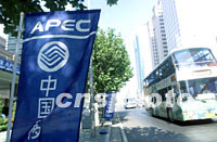 組圖:2001年APEC第三次高官會 2001年08月21日 18:31 ![]() 2001年APEC第三次高官會八月二十三日將在遼寧大連開幕,主會場香格里拉酒店的侍應生佩帶APEC標志迎接與會人員。中新社記者 滿會喬 攝 ![]() APEC2001年第三次高官會八月二十三日將在遼寧大連開幕,主會場香格里拉酒店外掛滿APEC字樣的旗子,APEC成為八月份大連最重要的主題。中新社記者 滿會喬 攝