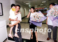 圖:虎口逃生的王勝利在廈門與妻女團聚 2001年8月25日 18:42 ![]() 24日上午,在菲律賓南部脫險的中國公民王勝利乘班機離開馬尼拉,于上午11時抵達廈門國際機場與妻女相聚。中新社圖 鄭憲 徐萬 攝