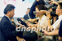 圖:金立群在第八屆APEC財(cái)長(zhǎng)會(huì)議接受采訪 2001年09月06日 16:31 ![]() 第八屆APEC財(cái)政及央行副手會(huì)六日在中國(guó)江蘇省蘇州市舉行,中國(guó)財(cái)政部副部長(zhǎng)、本屆會(huì)議主席金立群引起了許多記者的興趣,在會(huì)前被包圍采訪。中新社記者 李剛 攝 |