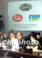 圖:第八屆APEC財(cái)長(zhǎng)會(huì)在蘇州開幕 2001年09月08日 19:55 ![]() 第八屆APEC財(cái)長(zhǎng)會(huì)八日在古城蘇州拉開帷幕,會(huì)議主席、中國財(cái)政部部長(zhǎng)項(xiàng)懷誠主持會(huì)議。與會(huì)代表將就全球和地區(qū)的宏觀經(jīng)濟(jì)形勢(shì)、經(jīng)濟(jì)全球化等問題展開廣泛對(duì)話。中新社圖 蔣振江 攝 |